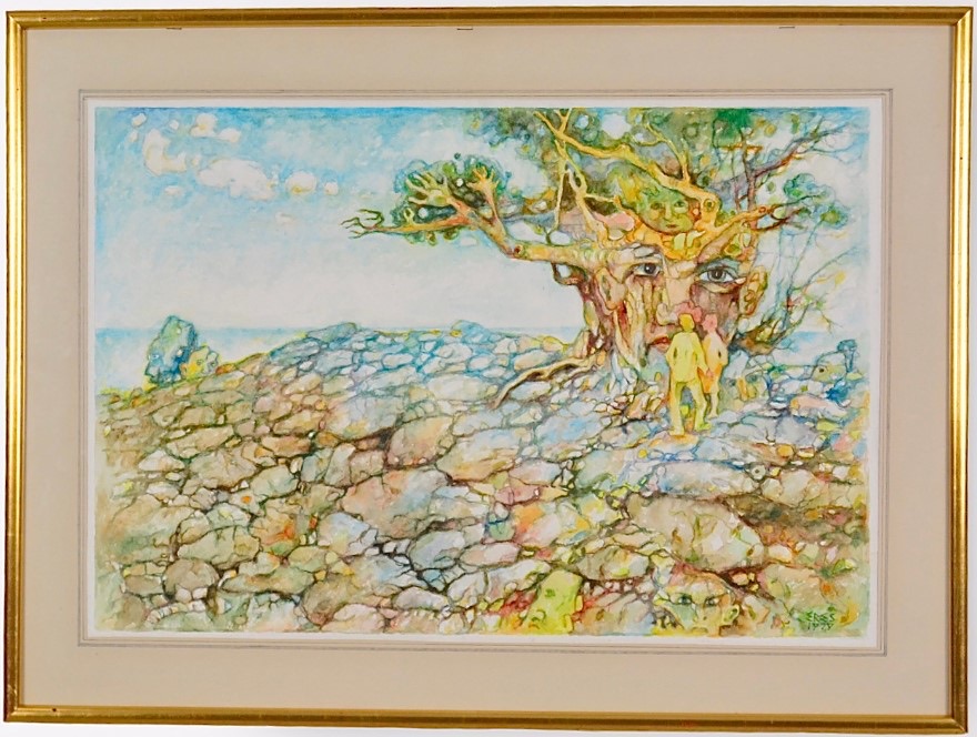 “Fantastilised maastikud“ on kaunis näide kunstniku loomingust, mis võiks olla suurepärane täiendus teie seinale või kunstikogusse. Kasutage võimalust soetada see sürrealistlik akvarell ning investeerige kvaliteetsesse Eesti kunsti.