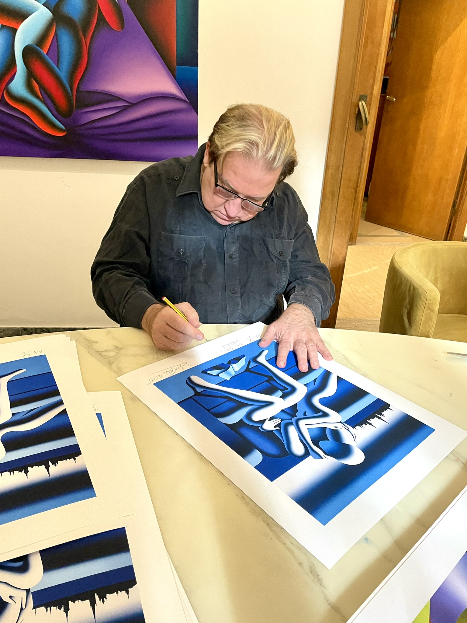 30 teosega limiteeritud väljaanne. Autori poolt signeeritud “Kostabi 2025”, nummerdatud, ametliku Kostabi kuivtempliga.